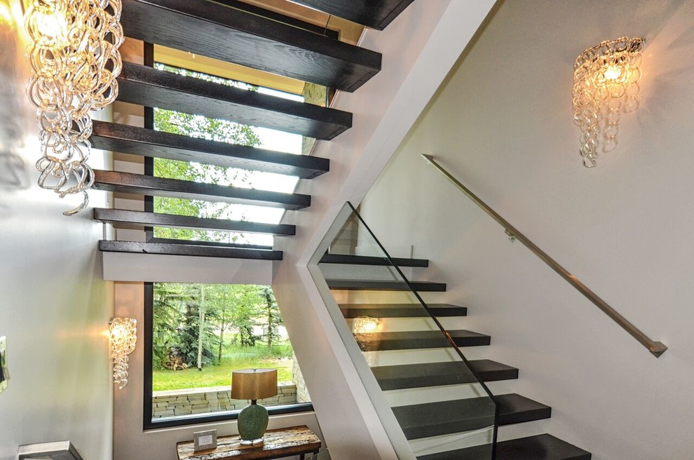 Contemporary staircase black with glass.